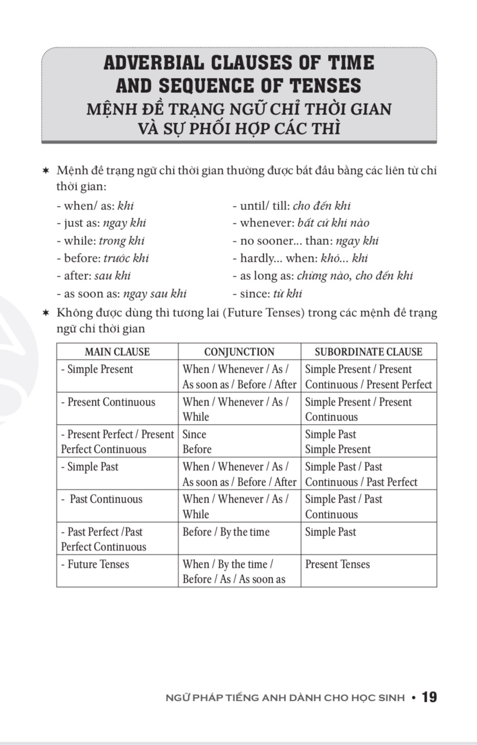 cấu trúc ngữ pháp trong chương trình phổ thông, kèm theo cuối mỗi phần đều có phần LƯU Ý như là một dấu hiệu thường để nhận biết chung – mà các em thường gọi là “tips” – để phân biệt các thì hoặc thể loại câu trong Ngữ pháp.